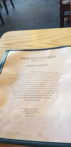 This has been a favorite place of mine and my family for many, many years. Food is always really good to great. Service has always been friendly (even if not always the speediest. Whats everyones rush anyhow?) View is one of a kind. And atmosphere, also one of a kind. I notice some reviewers are outspoken about how the Dead Fish is "better". To each their own. And Im sure they would still like the DF no matter where it were located. Ya see, the DF is not a Crockett restaurant. It is a restaurant that just happens to be located in Crockett. While, on the other hand, the Nantucket IS so much a part Crocketts history and vice-versa, one would have trouble separating the two. So if you just want to eat, go to the DF, or Burger King or whatever... but if you want to enjoy the "Crockett dining experience", something I would describe as down-to-earth people, no attitudes, no snobbery, just warm conversation with friends both old and new, then there is NO choice to be made. The Nantucket is simply the only option.