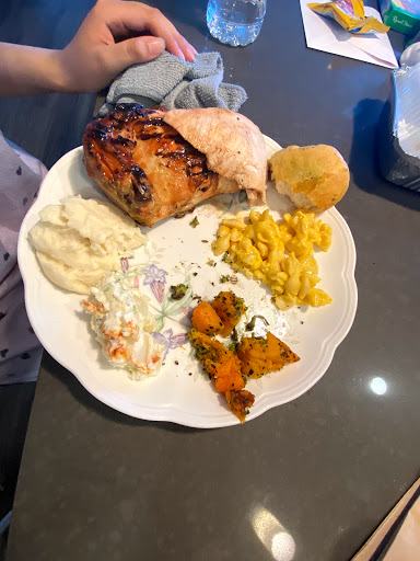 Their bbq salad is amazing (its not healthy, but its delicious) , so is their fried chicken. Parking is annoying. Small lot, lots of shops.