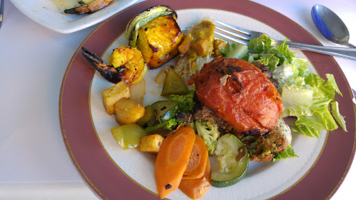 Arya is a Persian place in Cupertino. They call themselves global by throwing in some Italian and American dishes but to me, they are inherently better off claiming their food as Persian. They kind of competes with Kabul, Dish Dash and Chelo Kababi in the neighborhood for reasonable Mediterranean fare at $$ prices. The restaurant is spacious, well decorated and overall- very welcoming. From both my trips, there were items that stood out as extremely well done. The menu looks less vegetarian friendly than what it is. During my first trip, we ordered the sampler platter appetizers which were great. The pomegranate lemonade was very interesting. The second time around, I opted for the safer drink bet- the lassi like Doogh. They also offer complementary bread with a side of a mint based spicy chutney that is pretty good. I ordered my main vegetarian lunch dish – a vegetarian platter with the Adas Polo (persian rice with dates, lentils, raisins and saffron), Persian side salad with diced cucumbers, and vegetarian kabab. The flavors in the rice are alone worth a trip to the place. It smells and tastes wonderful. The raisins, lentils and dates make it an exotic dish. The rice is well cooked and particles are distinct. The Vegetarian Kabab (less mushroom for me) is also very good and very flavorful without any heat. Overall, my group was incredibly happy with the food both times. I can heartily recommend Arya as a good lunch place for vegetarians in the South Bay. Rating: Ambiance: 8.5/10. The place looks very Eastern with hookahs greeting you at the entrance. Nice ambiance overall. Service: 8.5/10. Service was very good and attentive. Food: 9/10. Both trips, I loved my food. Just loved the flavors. Price: 7.5/10. Arya is not your cheap lunch place for sure. But you get a good lunch for sure. Restroom: N/A Overall: 8.5/10. I enjoyed my two lunches at Arya. I would not hesitate recommending it and definitely plan on making a trip again.