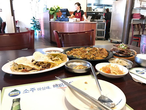 This is our regular Korean standby. The seafood pancake (pajun) is crispy and huge - could be a meal for two in itself. The tacos are another favorite. I dont think anything will blow you away, but it is very reasonably priced, high quality and yummy food.