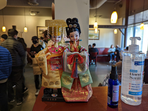 Every time I visit, I feel like I have walked into my Korean friends homes. One person very calmly hovers over the cashier, while a bunch of waitresses furiously run around with dishes and utensils. This usually means very fast service in and out for lunch! We usually arrive around 11:30-11:45am and there is not too long of a wait for a 4+ persons table. My favorites are the tofu soup and kalbi lunch specials with red rice The dolsot bibimbap is also good. For the non-adventurous, white rice is also offered.