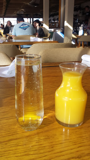 Ate on the patio,dining room does not look very interesting....GREAT location, food was pretty good....as a business, it seems like they could reduce their prices by about 30% and be a lot busier (Salad "adds" made a Salmon or Shrimp salad $22), although we arrived today at 11:45 and by 12:30, the patio seating was pretty full. Ask for "Tall" if you want a full sized Bloody Mary (which is a bargain at $7) and I did notice some really nice ice cold service of a neighbors Pino Grigio and peeked the menu said this was $19...not bad at all for this water view real estate. Well go back again and really enjoyed our lunch.