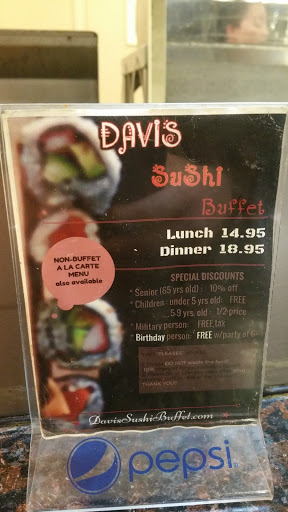 Davis Sushi Buffet was a good spot to eat sushi. Recently, I would say about 5-6 months ago, the cleanliness has gone out the window. The stools are all ripped and dirty, the carpet smells and although the guys doing to serves is nice, he cant be expected to clean, take orders, greet guest all alone. The owners of Davis Sushi Buffet have good sushi but need to invest money in hiring another server, replace furniture and please clean! I use to bring my parents here but no longer, I would feel embarrassed to bring anyone here to eat. Unfortunately, I know Davis Sushi buffet will not change its path unless we all stop spending our money there. Please do not eat here, not only is it disgusting to eat sushi in a rancid smelling restaurant, but imagine the kitchen that we, the public, dont see. I cant imagine how dangerous, and a risk it is to eat sushi at Davis Sushi Buffet. DO NOT EAT HERE, BE WARNED!