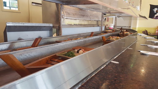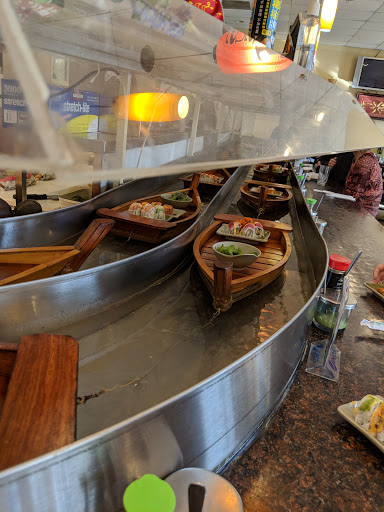 First sushi place Ive been to where the have the boats floating by. Pretty cool experience! All you can eat so stack those plates:)