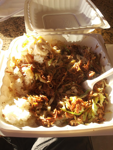 Ohana BBQ. This place is freaking amazing. The food is great, and its a decent amount of food for the price.