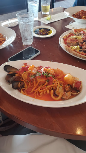 I dont really come here too often anymore, like I did when it first opened (yes, Ive been in the area that long), but all in all, its pretty good. The pastas are fresh. I usually stick to the basics like the tomato/basil/pasta or a grilled chunk of meat. The breads are really really good, since they bake them fresh, in-house, so keep asking the waiter to bring you new platters. The pizzas and stromboli used to be good, but now I look for better places when I want pizza. Still, its a great location, with a view of the ocean on the semi-enclosed patio.