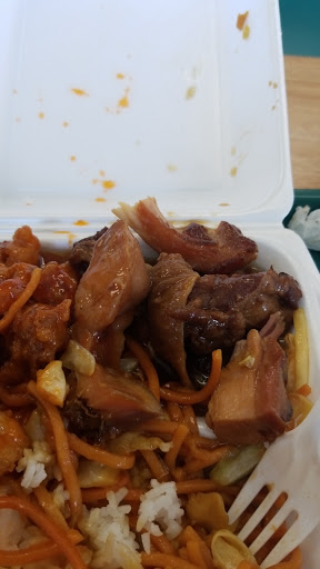 Only because I cant give a zero!! First time trying it, the chow mien was flavor less, orange chicken was dry and chewy and even found a piece of bone! BBQ pork was extremely salty! Veggie rolls were oddly full of white spots and had no veggies inside um! I went back and told the woman there of my opinion and that I honestly couldnt eat her food... She didnt wanna hear me and went on trying to explain that she uses fresh chicken thigh and that too bad I didnt like it and that her customers never complain and that if I want my money or exchange it wasnt gonna happen! That if I get sick to get health insurance... I was furious! This had never happened to me! I wouldnt recommend it, she even said "Well you shoulda asked me for a sample before buying, I never exchange or refund so too bad now leave!"... Omg I almost lost it!!