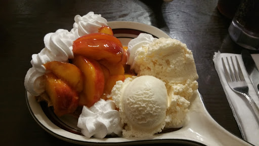 My sister brought me here some years ago. The atmostphere is like a mom & pops dinner. Its a little old but it adds to the charm, I guess. The service is decent and the prices are reasonable. I ordered the fettuccine primavera - I was with my young toddler and I knew shed eat that. When it arrived at my table, it was awful. There were big chunks of carrots, cabbage and other indistinguishable vegetables that were better suited to be in a stew than slathered in Alfredo sauce. The vegetables tasted like they were parboiled in plain water and thrown on top of the pasta. My sister, having been there before, had the steak and shrimp. She liked her food. I was not happy. Now that I moved to Downey, this is one of the places I avoid. Perhaps I should give it another chance and order breakfast or lunch and try one of their pies...but I cant bring myself to.