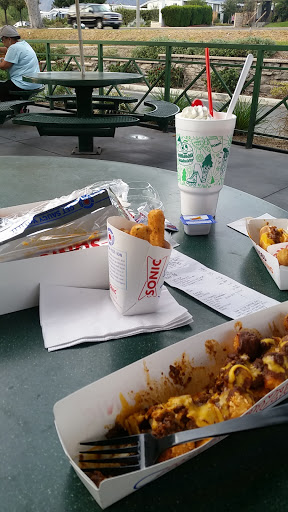 Sonic makes a cookie shake that is to die for so I figured, how can I go wrong taking the family out to eat here. You get the girls rolling around on skates right up to your car door just like in the old days right? My kids are going to love this I thought. Took my wife and kids tonight, Saturday at 7:00 pm. Lot was 25% full. Took 9 minutes to get our order in and 20 minutes to get it delivered to our car. Food was cold upon arrival. Server thought all the drinks were Ice Tea because they dont label them so he guessed. One combo came with "one" onion ring. One other order was completely wrong. The boxes of fries were only half full. 30 bucks could have gone a long way towards a fantastic meal any where else but here. Absolutely horrible service and terrible food. Now I know why my wife only goes there for the shakes. Never again.