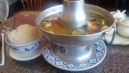 Thai City is a real find. The dishes we had were all tastefully prepared, with high-quality ingredients, and the Massamun Curry was particularly nice. Flavors were bold, but the heat level was fine for most diners. Our family includes four children, and the baby was on the verge of tears when the glass noodle soup ran out. Prices were surprisingly reasonable; one can pay more at styrofoam-tray Asian express places. We especially enjoyed the family atmosphere. The decor and the outdoor courtyard reminded us of restaurants overseas, where family-run eateries offer excellent dishes and personal service.
