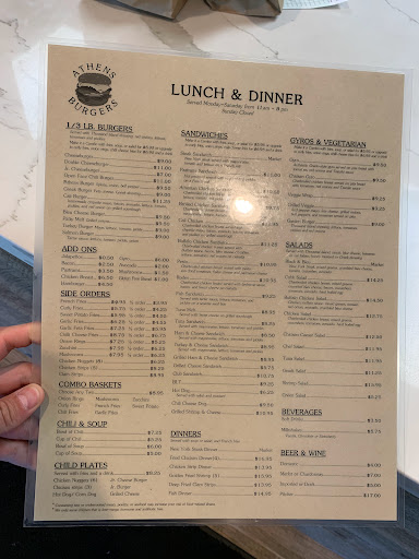Ive been to many dozens of places to eat here locally and elsewhere. Athens provides the friendliest atmosphere with great meals. Theres nothing they wont do to make your experience a great one! Thank you Athens Burger!!