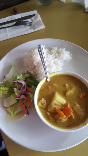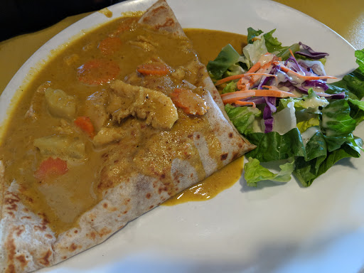 Wonderful curries, soups, desserts, many served on crêpes as their signature — gluten free available. Absolutely delicious! Nice little place. Spicy is Spicy, and theyll discuss with you whether and how hot you would like, and Deliver! Happy taste buds here (I go for srs spice when killing a proto-cold. This. Works.) Yum!