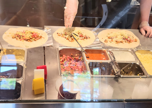 Its chipotle. Tasty but certain food coma outcome. This one has had hit or miss for service. Some quite friendly and others downright rude. Unpredictable. Almost always a long line though.