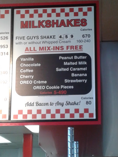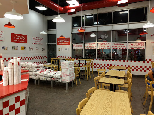 I am a big fan of Five Guys, but this location is poorly run. I do not eat hamburgers and only hot dogs. Seems they are regularly out of hotdog buns. There are other maintenance things like the door hinges coming off which is a big safety hazard. They said they were working on it, but it didnt seem like an urgent matter.