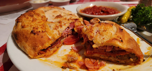 The service was quiet frantic, a busy place to dine in. Plenty of people, wait time about 45 minutes. The pizza I ordered was a Stromboli, it was very fulfilling yet sloppy work. They put too much marina sauce, that made the dough too soggy and disgusting to pick with my hands. Had to eat it with fork, and there was just too much cheese and ham. They should weight the food instead of just dumping too much of everything it makes the pizza too bulky and too unpleasant to eat. I hope to come down to eat a pizza that isnt rushed and cooked properly. The edge of the pizza was just too raw, it tastes like Im eating marshmallow.
