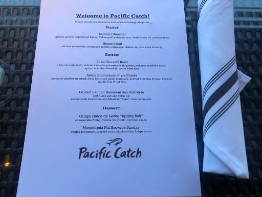 If you want fresh tasty salmon, Pacific Catch, Dublin is the place to fulfill you craving. I picked up my party from Dublin BART, decided we needed to eat, checked Zagat ratings & 5 minutes away after making online reservations we were in the parking lot ready for an adventure. Smiling & charming Maddie our hostess sat us immediately. Jennifer,our bubbly, attentive & knowlegable waitress guided us thru the menus. Manager Edgar loves his job & shows it. His coming over to check on us was really quite a treat. It was pure salmon indulgence,salmon dip, chowder & a ginger garlic salmon entree. The calamari & dipping sauce, California roll with real crab & Vietnamese steak sandwich also were great. I can compare our meal to SF wharf seafood dining, delicious. Pace yourself & have a mouthwatering desert,ie malasadas, hot bitesize donuts with chocolate dipping sauce. We will definitely be back. Thanks everyone for a wonderful experience