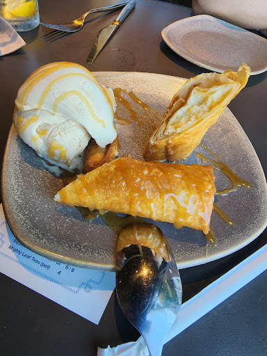 Parking was an absolute nightmare but I visited on black Friday so perhaps not significant. I was seated relatively quickly without reservation for a late lunch lunch. They sent out these little fish pretzels and cold (I mean COLD) shelled unseasoned edemame as table gratis. Frankly if the edemame were room temp or warmer and seasoned if would have been better. Mango ice tea glass was small for $3 and with no sugar/sweeteners on the table but free refills keep the nice waiter busy. If I were a waiter here Id pray for bigger glasses!! Firecracker roll was nice fresh and appropriately portioned but nothing to write home about and certainly not spicy. Fish and chips were very good and arrived at the table hot. The spicy chips have a touch of salt and paprika and perhaps a garam masala ... Very good no matter the sprinkled on spices. Fish was small but well battered and fried. The jalapeno tartar sauce seemed home made and pwas quite nice but the jalapeno flavor is lost in the mix. If you are going to advertise jalapeno or firecracker I would expect delivery on this. The slaw with the fish and chips was quite nice and generally good. My server was Marco and I highly recommend him ... He was attentive, helpful and very responsive. On his advice I had the in house made pineapple cake desert with a coconut ice cream ... The cake was a little dry and overdone but the flavor was excellent. It was advertised with caramel and that was mostly a plate topper. I personally would have put some pineapple syrup on the dry cake but for a fish joint this house made dessert wasnt bad. All in all a good $40 lunch that couldve been my dinner but the food was lacking the flavor of some advertised components.