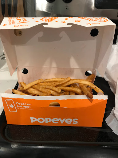 Typical Popeyes. I really like the spicy strips (theyre not too spicy...wish they were) and the butterfly shrimp. Wish they would offer that as a hobo mill or allow adding chicken strips to other combo meals.