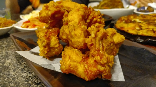 The only thing I didnt care for was the fried chicken. The best part of fried chicken is the crunchy crust, by covering sauce all over it, the crust is all soggy, and you taste nothing but the sauce. I feel its a little over-hyped from the reviews Ive read. The other traditional Korean dishes were delicious.
