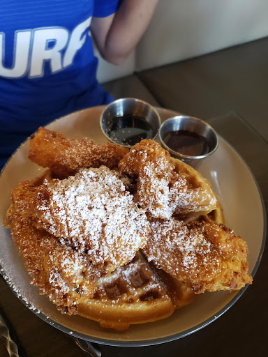 Fabulous food. Weve been there at least 6 times and each time I am more impressed. Brussel sprout appetizer, omlettes, grilled cheese, waffles, bacon, banana cream pie- fantastic! We love how you can customize your own mimosa with exactly the amount of juice you would like. Outdoor seating is beautiful with the fountain in the background. The service has always been fantastic. Kourtney, in particular is delightful and goes above and beyond. Highly recommend this restaurant.