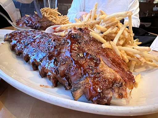 Their steaks are great, but what I like most about this place is their ambiance. I know during the weekends they usally have a band playing and during the nights they turn on their fire pit that you can sit and stare at while you wait. The porkchop I ate was great and the waiter was friendly and attentive.