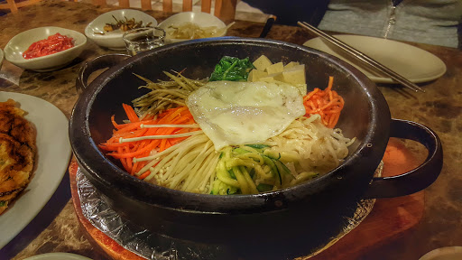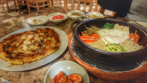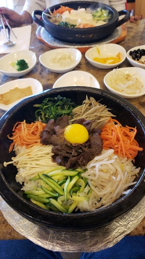First of all the lady server is very rude...2 tables was not cleaned, I already have my own order but then she recommended the menu in combination which she said very good, we are thinking coz of the price it is much better but when the food was served too much flipn hot we can see the beef in the menu was only about 5 thin pieces of shredded beef and the rice inside the bowl was already toasted and dry coz of the very hot plate no veges inside except bean sprout and fried egg..horrible!! It is not worth hpaying $18.99 for the small disgusting food and for my husband beef bulgogi small skillet with very few shredded beef is not worth for the price of $ 17.99 without any side dishes except small portion of rice. Their soon tufu soup was nothing inside only tufu..DISGUSTING TO EAT IN THIS KOREAN RESTU!! Much better to eat in the steakhouse because it is worth with the price