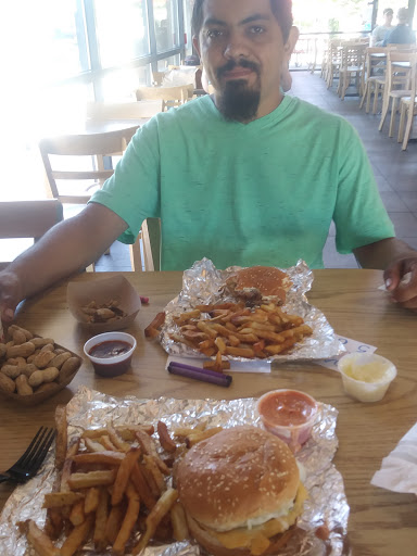 I love their hamburgers. I love all the topping choices that are available. And their French fries are delicious. My kids love coming in and eating the peanuts too.