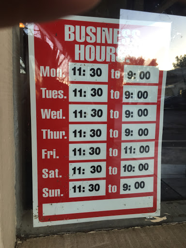 | Working: | 11:30AM–9PM 11:30AM–9PM 11:30AM–9PM 11:30AM–9PM 11:30AM–11PM 11:30AM–10PM 11:30AM–9PM |