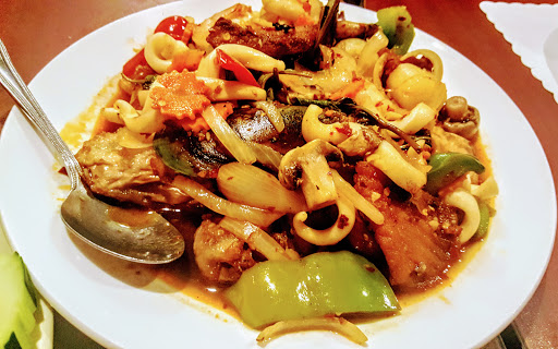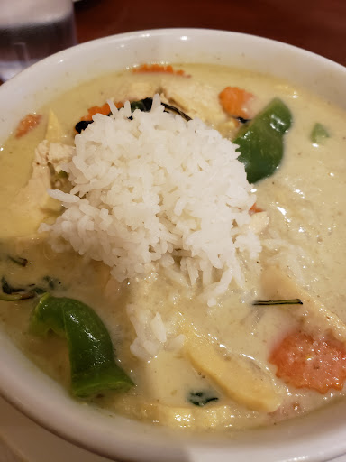 Okay, a few things you should know about this place: its not authentic Thai food, staffs do play favoritism to their friends, their "spicy" level is not spicy, and generally speaking, theyre always busy during dinner time. After eating 90% of their menu, I would only come back for their curry and dessert. The other items are not good. Theyre decent, but Ive had better. For example, their Tom yum soup tasted like package seasoning diluted with chicken broth and the seafood came from frozen packages. Save yourself and dont order it until theyve changed their cooking technique. However, I will give them kudos for their desserts. Theyre all reasonably priced and portioned.
