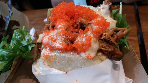 Very interesting take on sandwiches! Rice cake buns replacing bread, and tasty meat with good sauce inside! Slightly pricier than most sandwiches / burgers, but worth a try if you havent had it before!