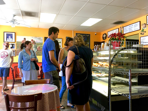 With service as sweet as the pastries, and pastries that melt in your mouth, this local, cute French bakery and cafe offers delicious cakes, pastries, gourmet panini sandwiches, and lots of other tasty goodies. The cafe bakery is named after and owned and operated by Mrs. Isabelle Briens, who is a French native and long-time San Diego resident. Mrs. Briens is the daughter-in-law of the famous Mr. Stan Chambers. Mrs. Briens worked for years at her cousins famous Del Mar French Pastry Cafe. In 2006 she opened the French Pastry Cafe in Encinitas and used her cousins authentic recipes to make delicious almond croissant, chocolate croissant, and apple turnovers, helping Mrs. Briens to gain a reputation for offering consistent quality, a warm atmosphere, and plenty of tasty treats for all occasions. This authentic French cafe bakery features scrumptious, freshly cooked and prepared foods for all occasions. Start the day with gourmet coffees, egg dishes, and/or fruit-filled crepes. Or choose a delicious breakfast pastry or warm butter croissant. The pastries are light, fluffy, and soft, especially the muffins. Other delicious pastries that I have personally tried include: custard brioche buns, strawberry cream cheese turnovers, coconut macaroons, blueberry and rasberry muffins, blueberry scones, almond croissants, and chocolate crossaints. Each are delightful and packed with sweet flavor. French music plays in the background in this little seat-yourself cafe bakery, with portraits and pictures of Mrs. Brien, her family, and France decorating the walls and creating a laid-back, casual ambiance. The warm, casual atmosphere is perfect for breakfast, brunch, or dessert with a friend or loved one or both The helpers are always courteous and sweet. Shout out to Lara and Ezequiel! They rock. If you want a genuine taste of France, and are looking for authentic, home-made, delicious pastries, then Isabelles is your place!
