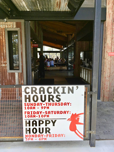 Newly opened restaurant with a hip modern interior flowing out onto a large front courtyard.....like an Aussie style beer garden which serves up succulent chicken and egg dishes.One of The Crack Shack Directors Dan Pena explained to me that they source only the best free range organic chicken available ..always fresh never frozen.The restaurant features a huge corner bar loaded with 32 beers on tap many of which are premium craft varieties.There are also multiple banks of large screen TVs adorning various walls inside and some hilarious chicken themed wall art to prod your sense of humor.Plenty of off street parking is available in the lot behind the restaurant.It truly is chicken nirvana!