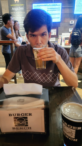 Seems like these days, more hip burger places keep popping out everywhere. Every "new" burger joint seems to have the same product as the neighbor burger joint, just under a different name. Burger bench seems to standout from the places Ive visited in the past. Not because its extravagant or one of a kind, but because its burgers combinations get straight to the point, kinda. On my menu was the Chorizo Diablo burger. Spicy chorizo, jalapeños, chipotle aioli, grilled peppers, and my fav ingredient, cream cheese! But aside from the burger tasting good, it disappointed me on the spicy side. Im not the snob guy that thinks nothing is spicy, but I can tell when something even has a hint of spicy in it. The most spicy thing from the burger, was the jalapeño with cream cheese that fell onto the plate. Aside from that, it was a good tasting burger. There soda selection is quite interesting and unique. Their sides (I ordered onion rings) are very good, and size is good enough for two people. Their beer selection is average but good, and can have classic beers that you may not see at other places anymore. Their prices may be a a little over the average burger joint, but their attempt on being unique may be all worth it. Give this place four stars just because their spicy chorizo Diablo burger failed at its main attraction. I can def say Ill visit again soon.