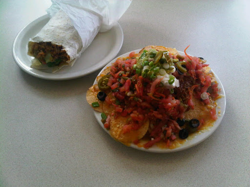 Was alright for a quick lunch. Offers burritos, nachos, tacos and other Ameri-Mex foods. They carry bottled Lost Coast brews. Theyve got some baked goods like cookies and brownies which I didnt try though was tempted as they looked tasty. My friend got a burrito, I got nachos (see photo). Large portions, not a bad price. Quick and easy and tasted like it wouldnt kill me, though nothing special.