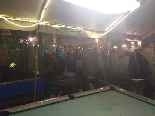 Surprisingly nice bar considering the name and exterior of the building. Theyve got a covered fenced patio area in the back with a couple pool tables and a good selection of alcohols.