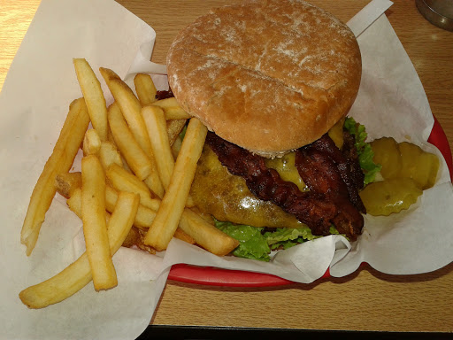 Delicious BBQ Bacon Cheese burger. Prices are completely reasonable even your basis for comparison is Mc Donalds as this juicy burger had amazingly fresh produce and excellent ground beef. Cooked perfectly, served hot and quickly during Friday lunch rush. In fact the entire family really enjoyed Stars, we all love a great burger and will return at our earliest convince. Guaranteed a delicious burger and crisp fries.