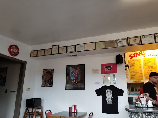 I have been eating and rating hamburgers on a scale from one to ten for years . I have had burgers in Montana , Idaho , Nevada , Oregon and California and I have yet to find a 10 in any of the many burger joints I have eaten at in any of the for mentioned states . Oh I have had good burgers in lots of places ranging from 5 to 9 on the burger scale, 1 through 4 being chain burgers like McDonalds , Wendys , Burger King , Jack in the box, and Carl jr. And in my travels , only one burger has rated a 9 . That one was at the Shoshone drive in , in Shoshone Id. I have known about stars for years being a local in Eureka but for some reason I have never tried it. Probably because its not located in the mainstream of Eureka , there for out of sight , out of mind . Well , at the suggestion of my wife who has eaten there before prior to our meeting each other , we went there for lunch yesterday , and ladies and gentlemen , fellow burger lovers everywhere , let me tell you now, I have found a solid 9.5 double bacon cheese burger. Of course these ratings are based on my own likes and dislikes , but I have set such high personal standards on what it takes to make a truly ex so lent burger that my own burgers from my own grill have never rated higher than a 6.5 . The burger that I thoroughly enjoyed yesterday at stars had the perfect balance of meat and vegetables to bun ratio . The meat was not too lean there by producing a dry tasteless burger , but obviously had a higher fat content producing a juicy , run down to yer elbow and puddle on the table hamburger eating experience . As we all know after all, the flavor is in the fat. And the bacon on the burger was so perfectly seasoned it could stand alone in a very tasty blt. I was so impressed on my first visit that I asked the guy working the counter "who cooked the burger and will the same person be on the griddle next Saturday , for I WILL be coming back . " And I absolutely WILL be going back next Saturday and the Saturday after that . If upon my next two visits I find consistency in the quality I was so impressed with on my first visit , the 9.5 rating I give them now will definitely be changed to a solid 10. If the owner of stars hamburgers in Eureka keeps up with the reviews his / her establishment gets , just let me say , dont change a thing , keep up the good work , and thank you for such a delicious hamburger . See you next Saturday . Steve woodbury .