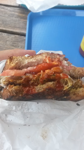 This is a small dirty cafe, with dirty chickens running around the tables and chairs of this place. the service was ok, but the wait time was fifteen minutes for a burger and a sandwich (there was only one customer ahead of us). we ordered a patty melt (doesnt come with anything extra), a pesto sandwich (also by itself), and a large ice tea. the total came out to $17!!!! definitely the worst value you can get from any low-budget cafe. i encourage spending money at local ma n pop shops, but will never go back to this place. thanks to the way our produce is inspected, organic food is tested less than non-organic, meaning they dont follow strict guidelines, allowing dirty food to be sold from here. my girlfriend has been throwing up all night and morning, all because we wanted to have a supposedly "healthy meal".