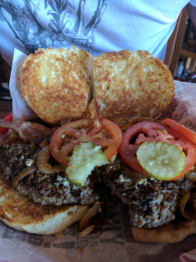 The burger was incredible. A little pricey. 50 bucks for 3 burgers and drinks, onion rings, and fries. Burgers were big though, and Id say worth it. Spacious dining room, and not too busy for a Saturday evening. Id definitely go back. I want to try the elk and ostrich burgers next. Very different. I dont know where else I could find those in town.