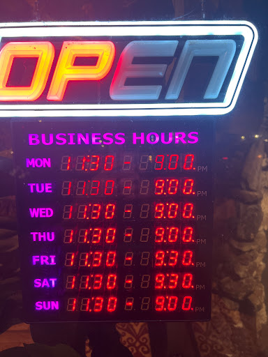 | Working: | 11AM–9PM 11AM–9PM 11AM–9PM 11AM–9PM 11AM–9:30PM 11AM–9:30PM 11AM–9PM |