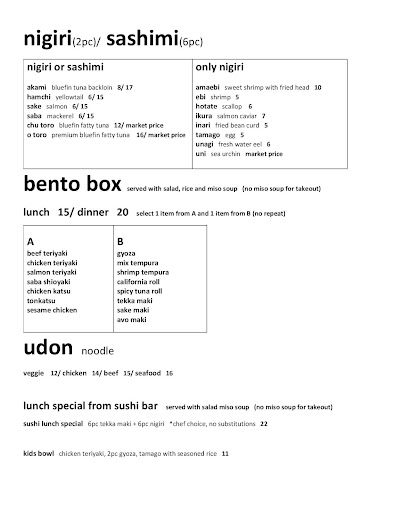 The food is great and the prices are reasonable. They use a high quality of rice. If you have young kids ask for the special handing (chopsticks).