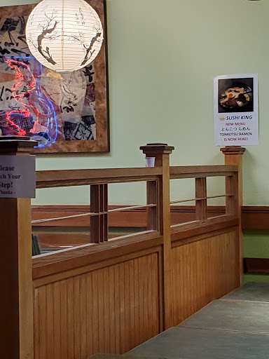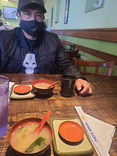 Filthy! Walked in on a Friday evening around 7:15pm. They were a little busy which is understandable for a Friday night. The waitress greeted us and asked if it was OK to sit us next to the door since there were few tables. We obliged and then started to realize our mistake. She asked us what we wanted to drink and we told her hot tea. She returned 2 minutes later with water, no tea. That was the last we heard from our waitress. Another family came in , got seated, and even had their order taken before us. We also saw another customer report to the waitress that the silverware had accidentally hit the floor and that they need to bring it all to be washed since they were now dirty. In addition to our sticky table, their menus were filthy and also covered in dried soy sauce. There was much dirt on their carpets and by 7:50pm and no tea or other services, we just up and left. So disappointed . . . even their water tasted like it came straight from the tap without filtering. Sorry, but Sushi King should really be named Sushi Joke!