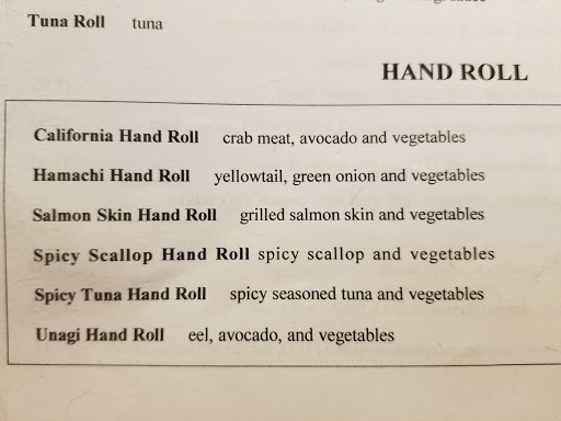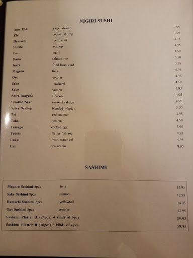 Only sushi place around that serves California rolls with real crab and no mayonnaise. Raw Tuna is always fresh. Prices are reasonable. Friendly staff.