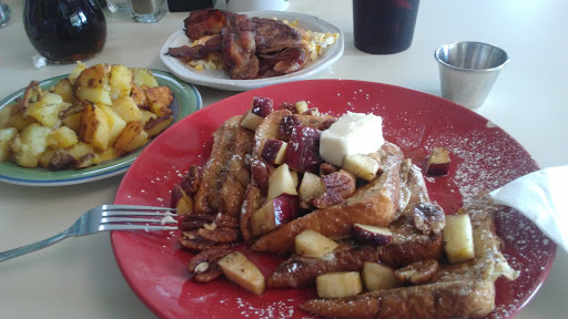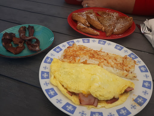 Good place to eat lunch after a long bike ride. Outside eating is much better than inside because you can eat with your dog and enjoy the cars rolling by. Pancakes are huge and are typically for two people.