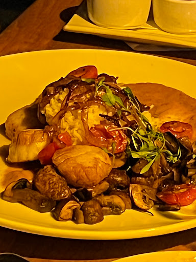 The service and food was excellent... however, towards end of meal, I pulled out what seemed to be hair / possibly brush hairs from one of my Benedicts. Manager on duty Paul apologized profusely and took care of entire meal!! Talk about exceptional service... dont worry we definitely over tipped the server for incredible service. Even though this happened, I would still highly recommend this restaurant!!!!