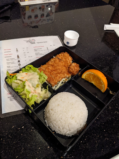 My wife and I recently came to Taiko Sushi for the first time for a semi-date early dinner. The decor was nice and the staff seemed pleasant. Since we came during Happy Hour, there were multiple deals we were able to take part in. Our Bento boxes were buy one get one half off, so that was very nice. I was also able to get a nice $2 draft beer. The dinner-time bento were fairly decent in quantity of food, though my wifes teriyaki salmon was a tad on the small side. Sadly, the salad used an odd runny ranch-style dressing instead of the sweet Japanese style I am accustomed too. They did provide a large bowl of white rice to each of us, as well as a great supply of dipping sauce for our tempura. Everything tasted great (minus the salad) and was an enjoyable experience overall. I was also very pleased their California Roll had the imitation crab instead of that ground up crab mix. Its the little things. I will certainly be back to try their sushi options. I will update this review as I return, giving a better glimpse into the foods and services this location offers.