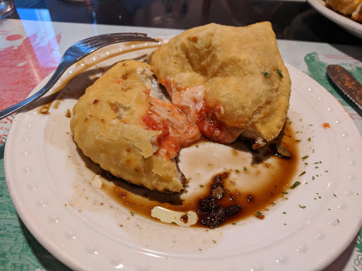 The son is serving and the Mom and Pop are cooking. It doesnt get anymore homemade Italian than that. Food was delicious and the cheese bread with meat sauce as a dip was fantastic. Also loved hearing them talk to each other in Italian. Id highly recommend it.