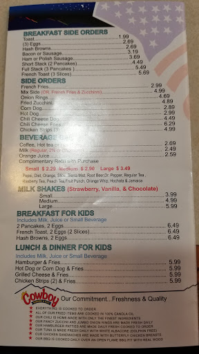As a team truck driver, my fiance and I stop at different food places. Cowboys is one of our favorites. The staff is always friendly and Ive never had a bad meal here. We absolutely love it. They also have truck parking! Dont just drive by. You HAVE to try it.
