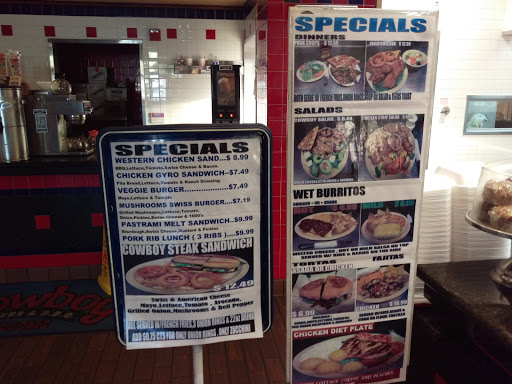 I went to Cowboy Burgers & BBQ for breakfast. It started out badly because they only had non-dairy creamer for the coffee. When I asked for half-n-half they offered me 2% milk. Ew! They refused to open a pint of whole milk so I had to buy it. From there, everything got better. I ordered an asada wet burrito with extra jalapeños in it. The jalapeños were fresh, not jarred and the burrito was outstanding. It was generously sized as well and will make a second meal. When I was getting a to-go container, the girl assured me that they would be ordering half-n-half. Overall, I definitely recommend Cowboy Burgers & BBQ and will return when I am in the area again.