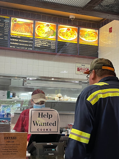 Large portions, great taste, its a truck stop Restaurant so if youre driving a semi youre allowed to stay as long as you check in with the restaurant. I had the cowboy Burger there before it was phenomenal. They have all the chili sauces and carrots on the side of the drink dispenser served with Thousand Island which is optional